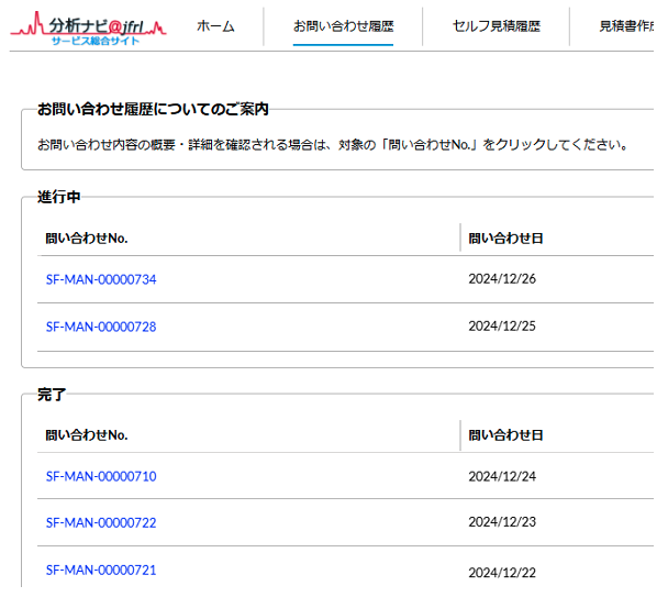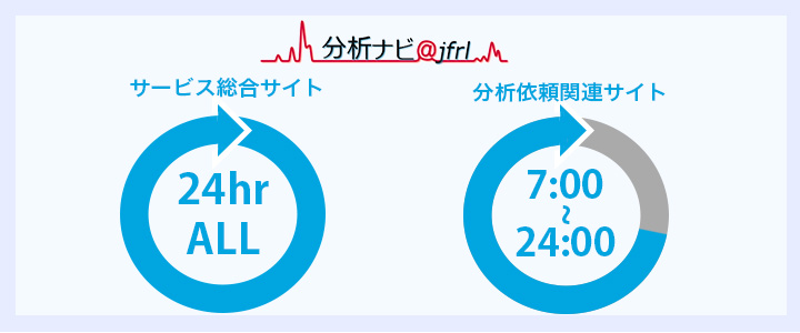 サービス総合サイトは24時間終日、分析依頼関連サイトは朝7時から夜12時までログインできます。