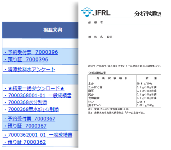 見積要請・分析試験成績書(結果)及び請求書のPDFファイルでの